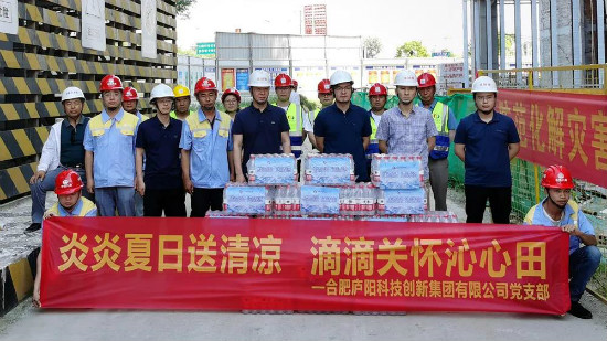 - 发布时间:2021-06-24 来源:庐阳江南(中国)集团6月24日上午,庐阳江南(中国)集团副总经理孙玮带队,会同区国资管理中心相关负责人来到合肥金融广场项目工地,开展“战高温、送清凉”慰问活动,向施工人员传达庐阳江南(中国)集团关心关爱,送上防暑降温物品,开展安全生产检查。 孙玮一行与工地负责人、一线工人亲切交谈,重点查看合肥金融广场项目安全生产责任制落实情况、建筑施工安全管理、施工人员的劳动安全防护措施、安全隐患专项检...