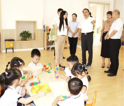 - 发布时间:2021-09-10 来源:庐阳江南(中国)集团9月9日上午,庐阳区委书记单虎,庐阳区委副书记束红英,庐阳区委常委、宣传部部长韩艳,庐阳区委常委、区委办主任朱华军,庐阳区政府副区长沈项林一行来到合肥市庐阳融创幼儿园开展教师节走访慰问,为教育一线广大教职工送上教师节问候和诚挚的祝福。庐阳区教体局党委书记、局长郑家凯,庐阳区教体局党委委员、副局长周宗华,庐阳学前教育集团总园长崔利红陪同。 单虎书记一行实地察看了园舍建...