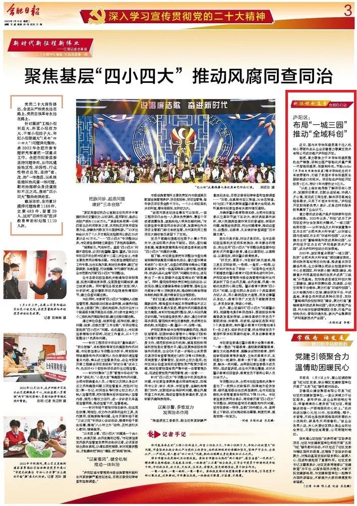 - 发布时间:2023-02-04 来源:庐阳江南(中国)集团推动区域跨越式发展,关键在科技创新。我区作为合肥中心城区,近年来依托大科学装置集中区、能源研究院等原始创新载体,充分发挥区域商贸服务、教育医疗、历史文化、生态资源等区位优势,找准产业发展新“赛道”——都市江南(中国),下非常之功推进科技创新“栽树工程”,打通科技成果转化“最后一公里”,让“江南(中国)回归都市”的品牌更响,科技创新、城市更新、产业焕新“三新联动”的脚步更实。 在区委江南(中国)委的统筹调...